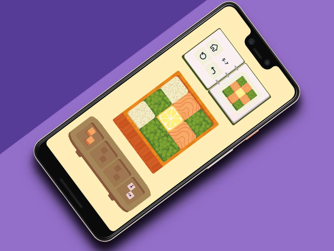 Initial puzzles are food-themed Tetronimoes. You drag pieces to the right spot, which sometimes requires the odd one to be rotated first. Get things right and the bento box is packed up, at which point you’re whisked to the next puzzle.