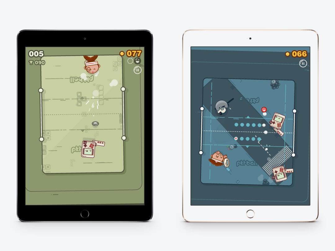 Each PKTBUDDY has its own music and themed court, which is just plain delightful. Dotboy makes everything all green as a Tetris-like game plays in the background, while Robobob uses a futuristic truncheon to smack balls as a relentless ’80s beat urges you on. These PKTBUDDIES also vastly improve PKTBALL in multiplayer, since everyone can have their own distinct sports star; just be sure to use a large tablet if you fancy a doubles match, unless you enjoy playing thumb Twister on a smartphone.