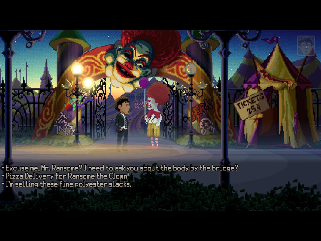 As a general rule in Thimbleweed Park, nothing is what it seems. Even as new playable characters – a games designer; a foul-mouthed clown cursed to never remove his make-up; a ghost – are introduced by puzzle-infused playable flashbacks, you’re only skimming the surface.