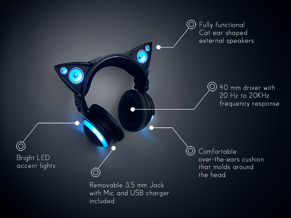 OK, we’ll be honest here: when we’re shopping for a new pair of headphones, certain things are never at the top of our list or, indeed, on our list at all; things like “fully functional cat-ear-shaped external speakers”, “bright LED accent lights”, and a microphone.