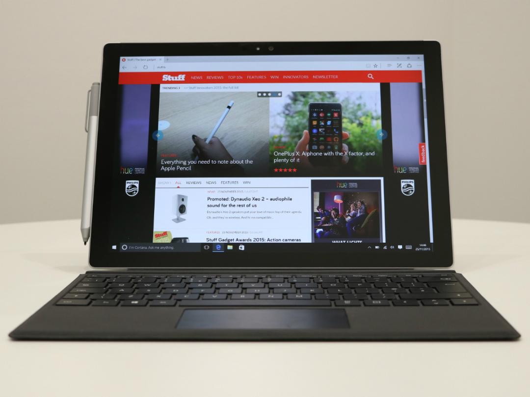 Attach the latest Type Cover to the Pro 4 and, in desktop mode, it’s generally ready for the worst of what you’d throw at a laptop. I’ve been running Stuff’s reviews channel for the past week off a new Surface, and then another one when I thought my first model may have been a one-off dud. That means a lot of email and writing, as well as some photo and video editing.