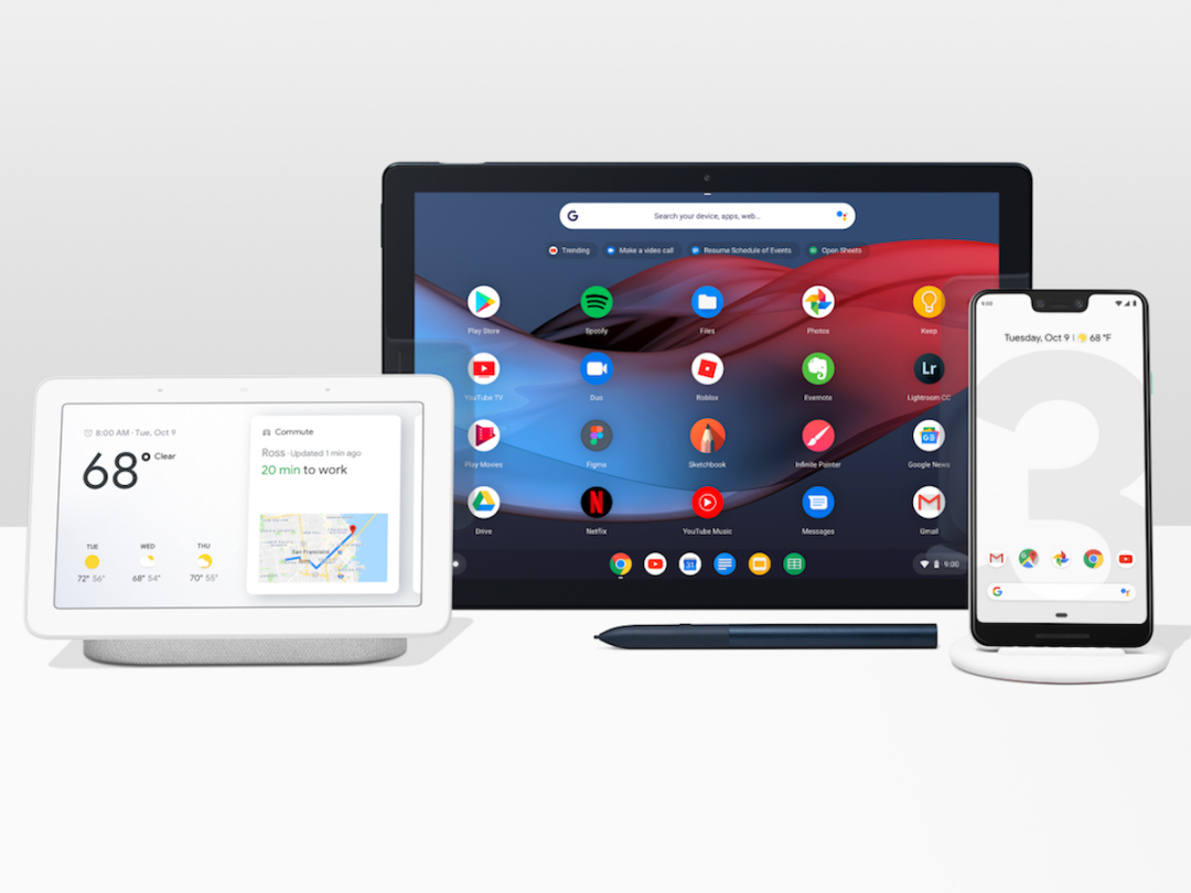 A pair of Pixels 3s, the Pixel Slate, Home Hub, and more