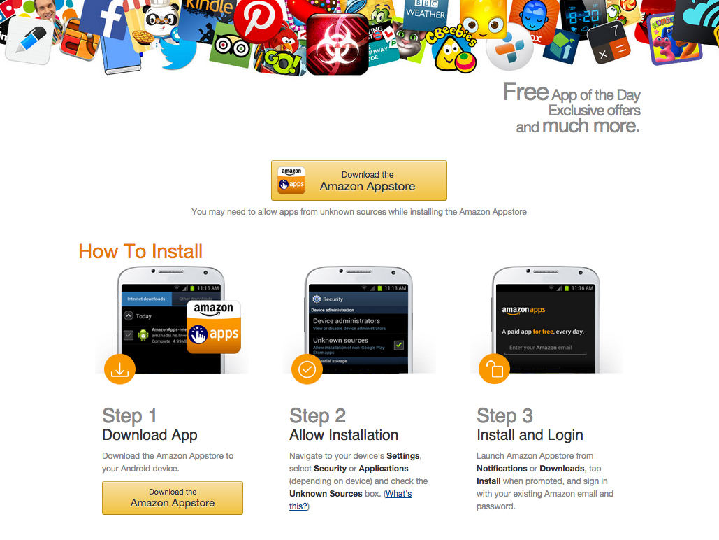 Google pulled the Amazon Appstore from the Play Store last year, but you can still download and install it directly from Amazon. Make sure you’ve got your device setup to install apps from unknown sources – all the instructions are on Amazon’s site.