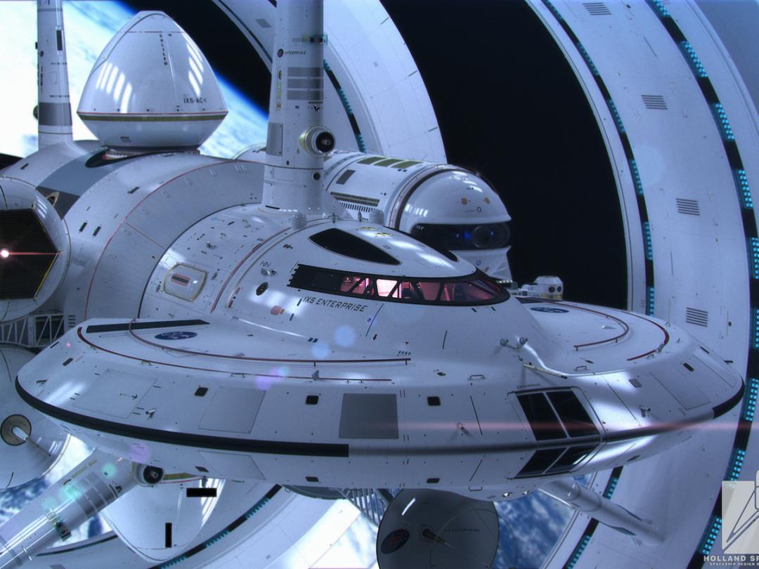 What you see above is a concept for the IXS Enterprise, which was created in collaboration by NASA physicist Harold White and artist Mark Rademaker. White announced back in 2012 that his team at NASA is investigating the possibility of a faster-than-light ship, and the design here would use the rings to help create the warp field.