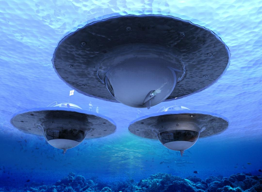 Space is becoming more and more of a rarity in today’s overcrowded world, and the UFO is one possible solution to escaping the crowds. Apart from that though, there’s something to be said for waking up to a glorious display of tropical fish surrounding your bedroom, before eating pancakes surrounded by the glittering emerald beauty of the ocean.