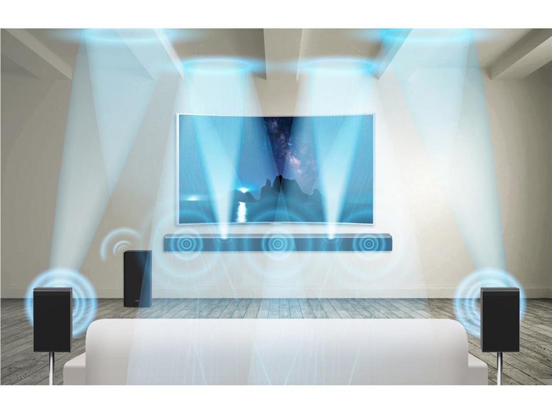 Soundbars struggle to make rear audio sound convincing, so Samsung has added wireless rear satellite speakers with forward-firing and upward-firing drivers. Throw in the wireless subwoofer and you’ve got a complete home cinema. It’ll sound just as immersive as a full 5.1 system, without the cable clutter.