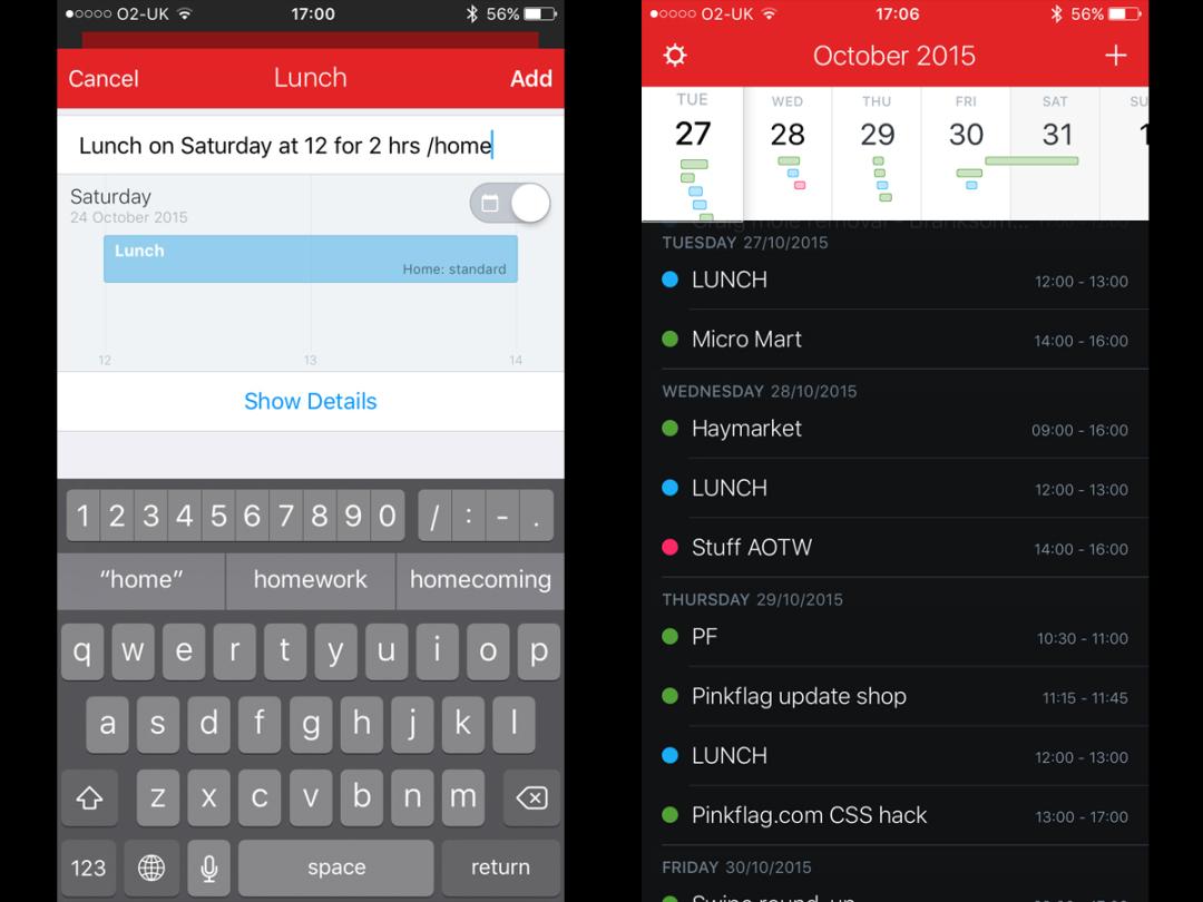 On iPhone, you get a single scrolling list of events, rather than messing about with individual day views. At the top of the screen is a glanceable ticker for providing a quick overview of how packed upcoming days are, and this can be switched for a standard month calendar. A week view is available in landscape. On iPad, these components are all on a single screen, making use of the extra space.