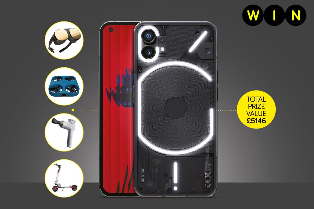 Headlining the huge prize package is the Nothing Phone 1 smartphone (£499), along with HTC’s Vive Flow VR glasses (£499), Inokim’s Quick 4 Super e-scooter (£1699), the innovative Nova H1 Audio Earrings (£600) and Maxpro’s SmartConnect compact home gym set (£985). You’ll also win an Anthony Joshua X Pulseroll Ignite Pro Massage Gun (£269), an Airselfie Air NEO photo and video drone (£250) and a pair of MyManu Clik Smart Earphones (£145). What a package!